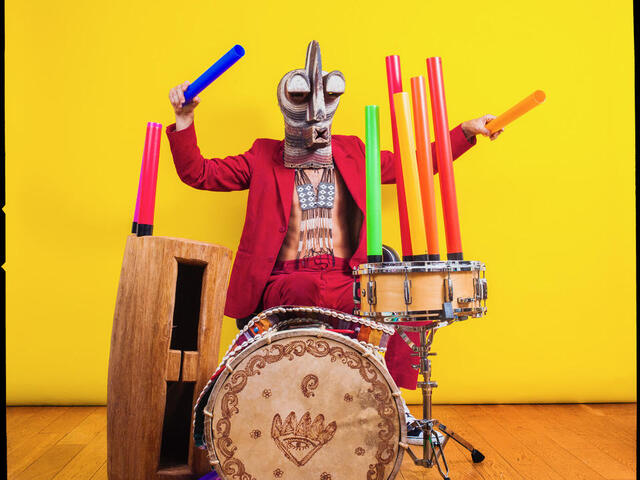 Véritable homme-orchestre officiant simultanément aux percussions, drum machines, platines et chant, il vous emmènera vers la transe en quelques minutes.